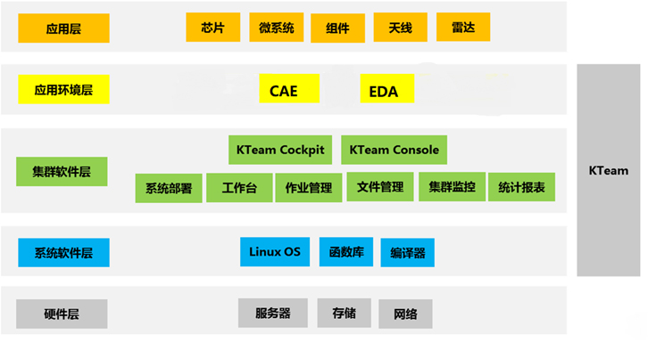 KTeam是基爾科技自主研發(fā)的高性能協(xié)同設(shè)計仿真軟件平臺,可實現(xiàn)設(shè)計與計算集群資源統(tǒng)一部署、使用、瀏覽、管理、監(jiān)控和統(tǒng)計等,可大幅提高仿真效率,簡化平臺管理。KTeam由應用工作臺、作業(yè)調(diào)度模塊、文件管理模塊、集群監(jiān)控模塊、資源統(tǒng)計模塊組成。選用KTeam及其相關(guān)服務(wù),可以幫助用戶部署操作系統(tǒng),安裝和測試集群軟件以及應用環(huán)境,基于高性能集群硬件設(shè)備,提供傳統(tǒng)的設(shè)計環(huán)境和高速的仿真體驗。